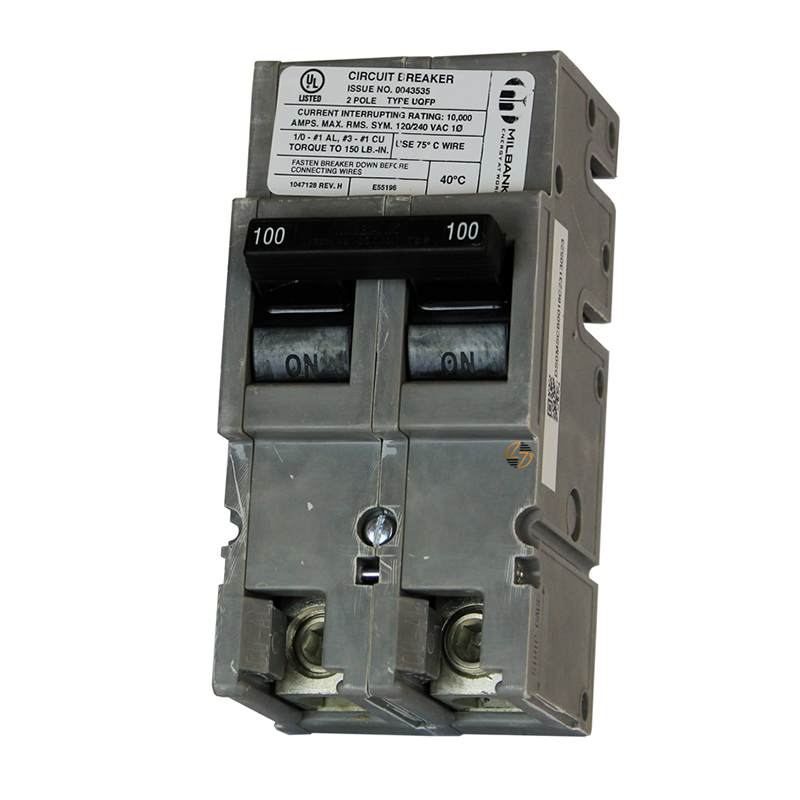 Introducing the UQFP-100 circuit breaker, a robust and reliable solution designed to meet the rigorous demands of modern electrical systems. Manufactured by Milbank, a leader in electrical solutions, the UQFP-100 is a 100Amp, 2-pole, 240V plug-in circuit breaker with a 10,000Amp interrupting capacity. This high-performance device is ideal for various applications, including residential, commercial, and industrial settings. Its exceptional build quality and advanced features ensure maximum safety and efficiency, making it a preferred choice among professionals.